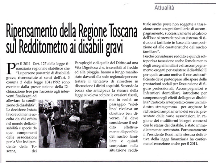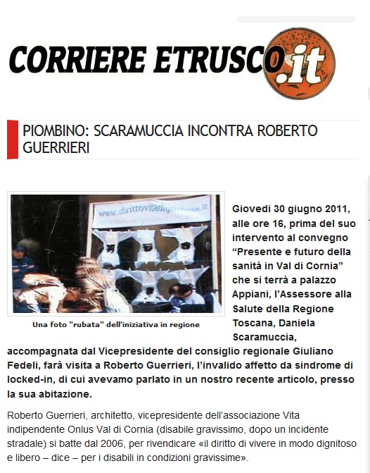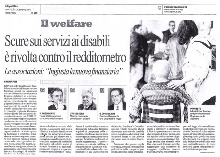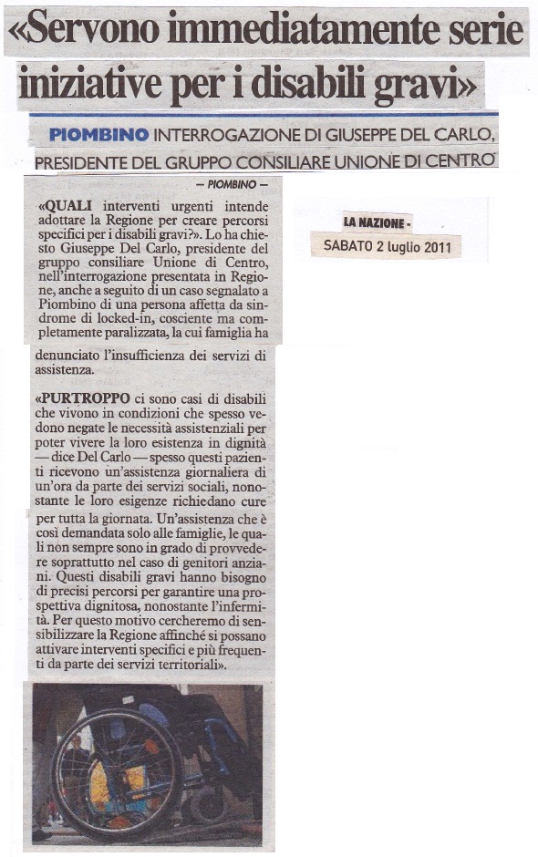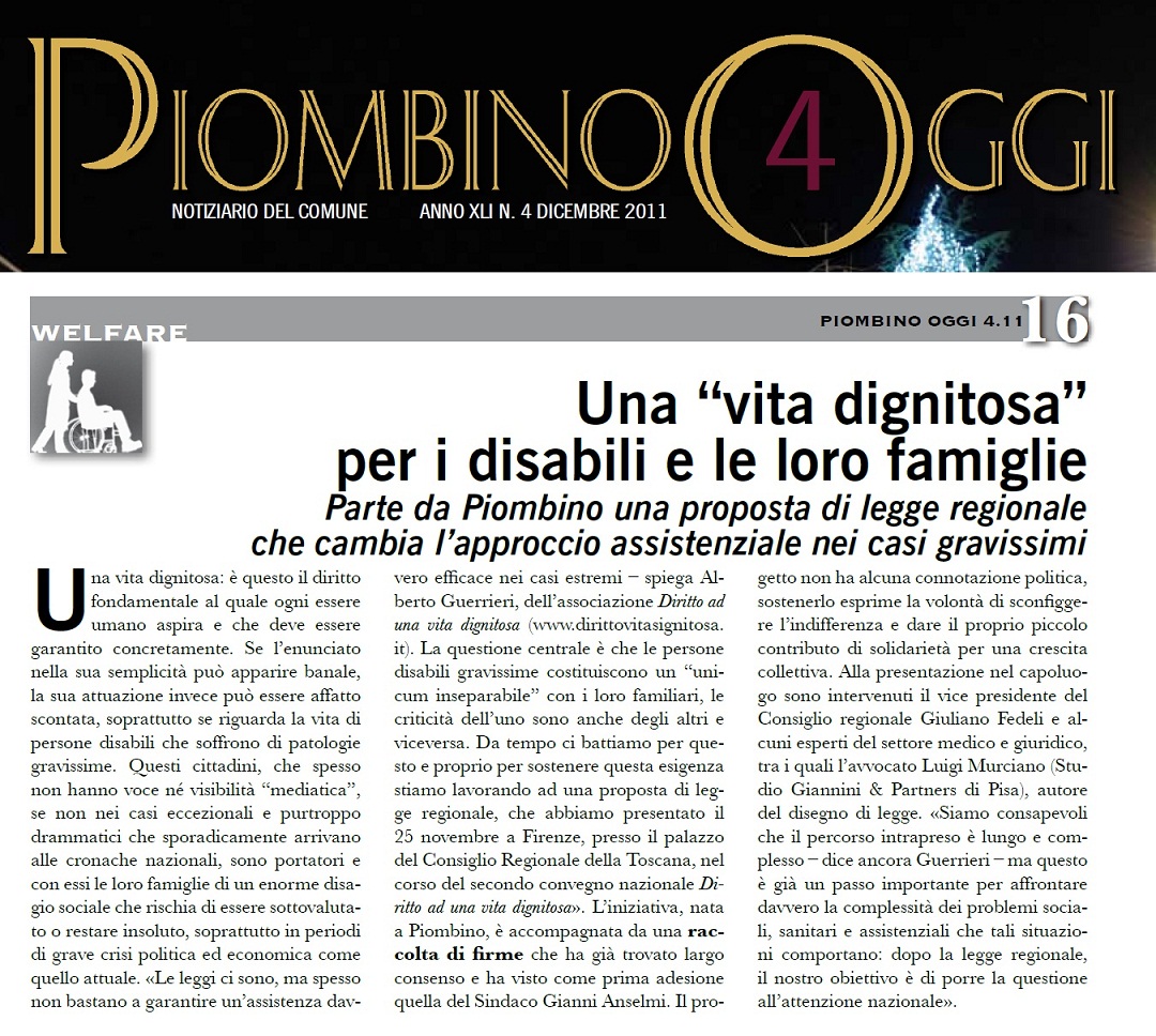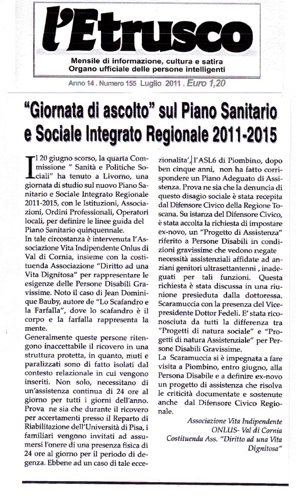 Riguardo alla giornata di ascolto sul piano sanitario sociale integrato del 20 giugno 2011, da L'Etrusco del luglio 2011: