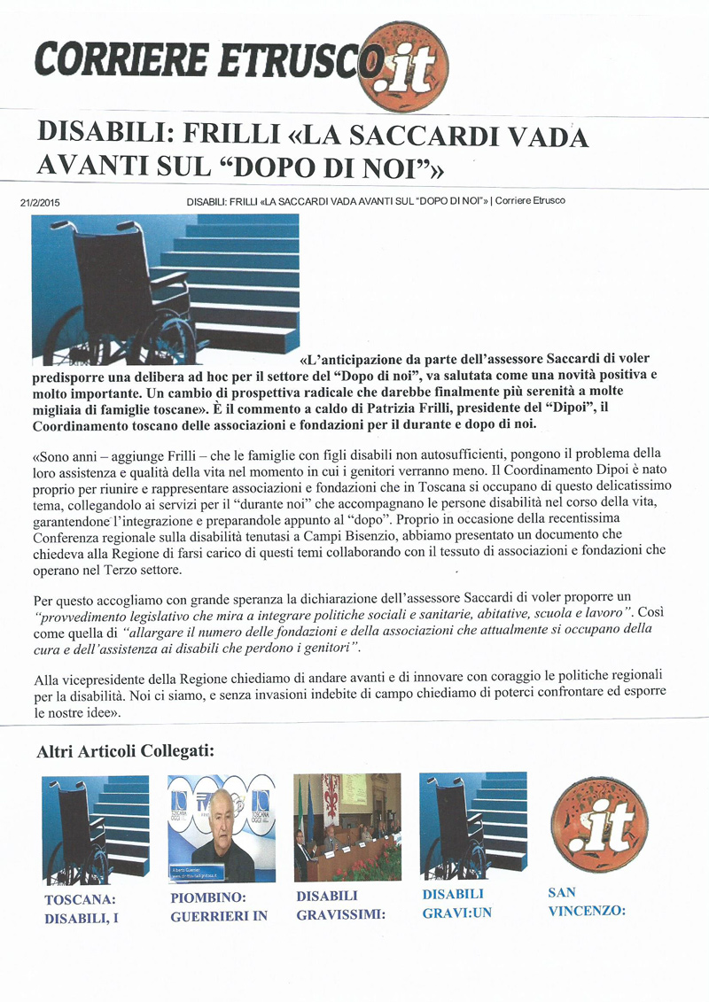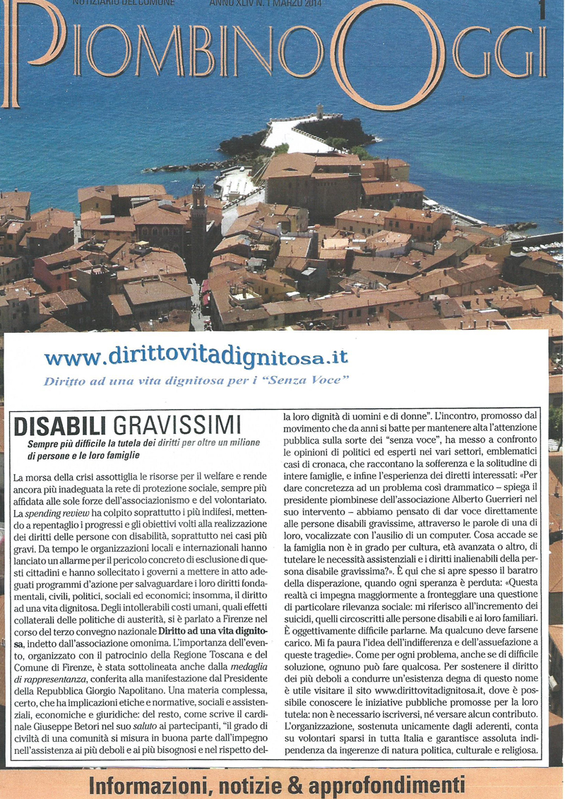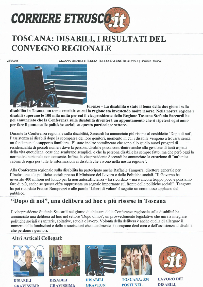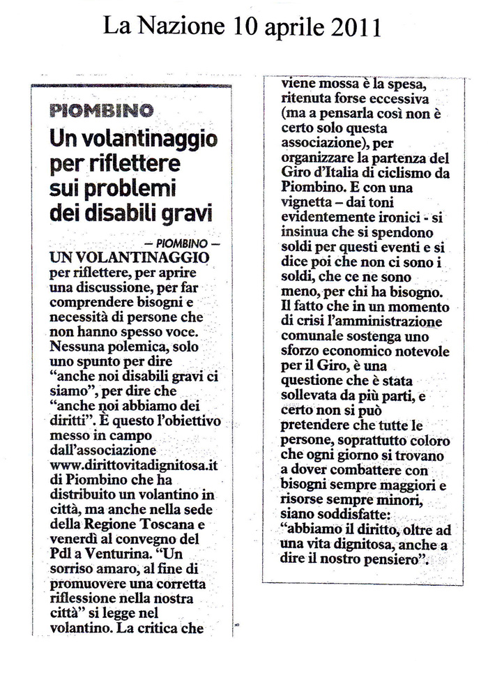 Riguardo alla giornata di ascolto sul piano sanitario sociale integrato del 20 giugno 2011, da L'Etrusco del luglio 2011: