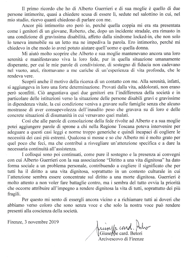 5 / 0B. Lettera Pres. C.E.T. Card. Giuseppe Betori