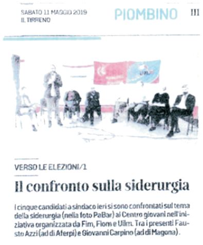 Per quanto riguarda il futuro di quanto è rimasto a Piombino, credo che un contributo, una riflessione competente la offrano gli amici di Camping Cig, Articolo 1. Colgo l’occasione per salutarli. Sono Persone serie che hanno affrontato da qualche anno questo problema cercando di prevedere alternative nel caso in cui la nuova e moderna Acciaieria a Piombino non verrà realizzata.